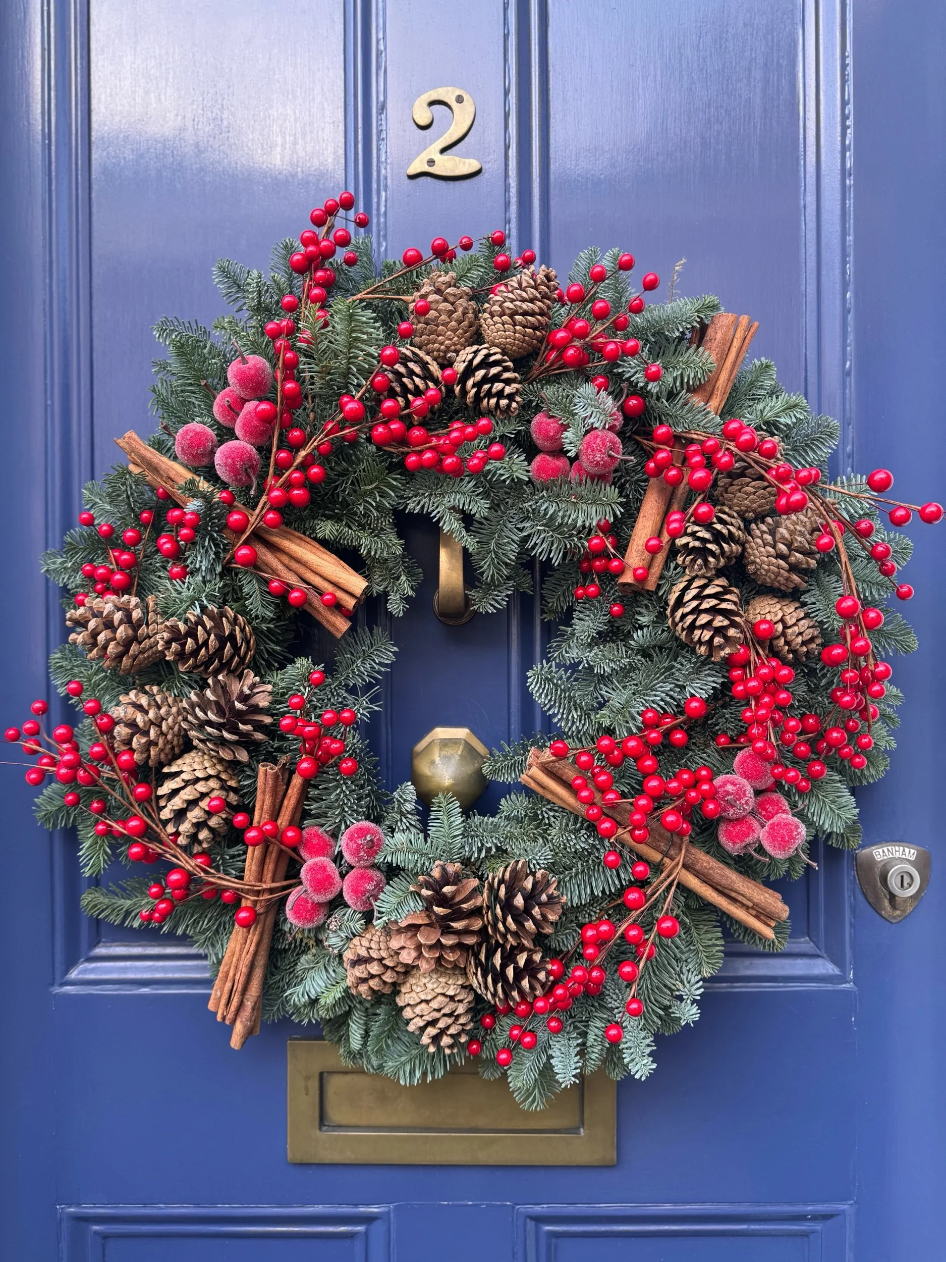 Handmade with a mix of natural cones, cinnamon, red berries, and mini sugared apples.